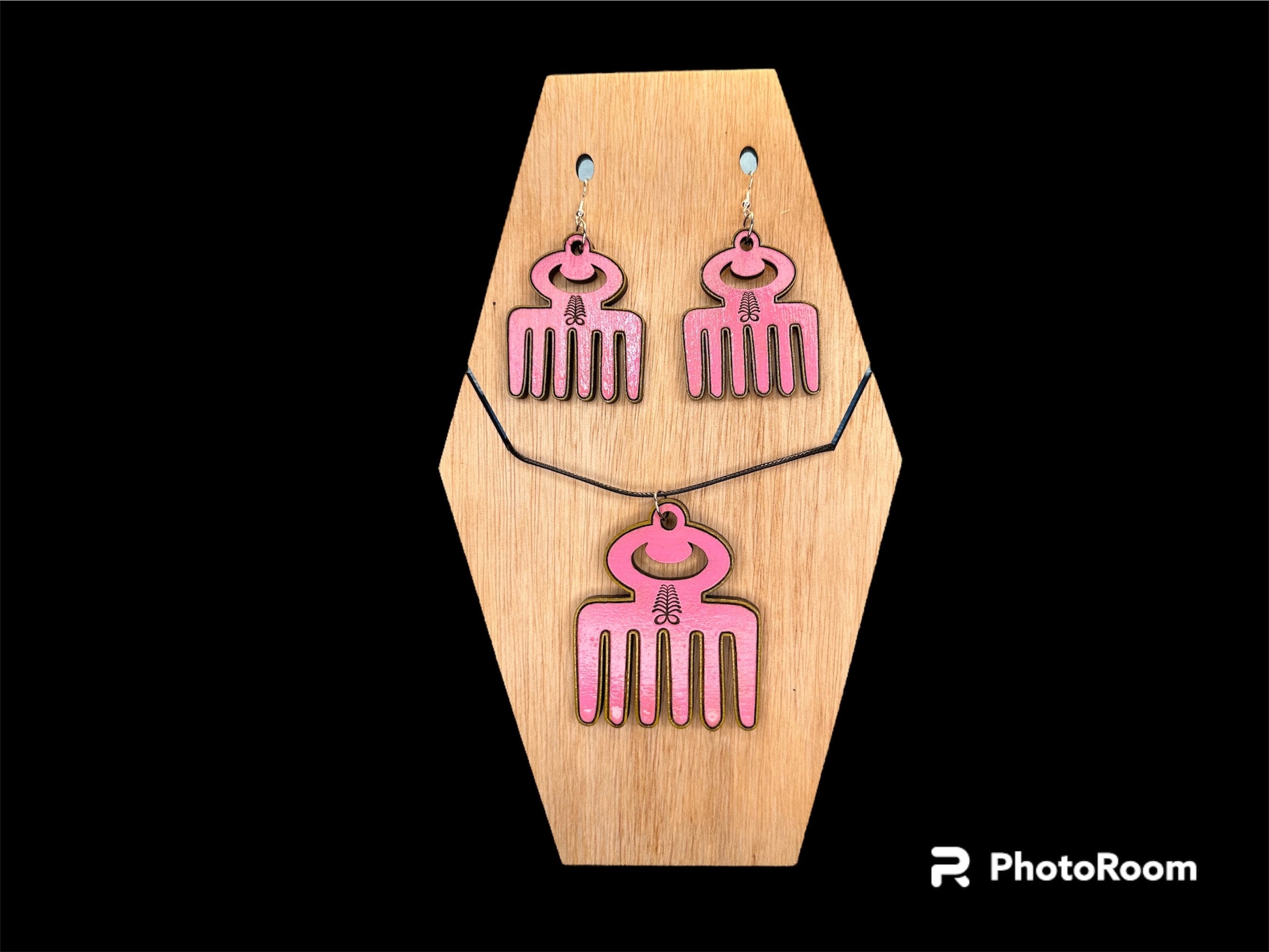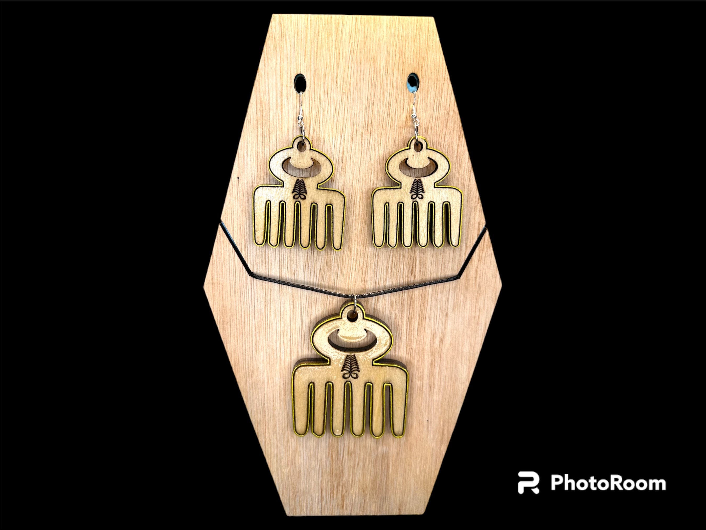 The Duafe Jewelry set represents the qualities of femininity and care. This set includes a wooden comb symbolizing patience and prudence along with other beautiful accessories. The perfect addition to any outfit, this jewelry set will make you feel empowered with its reminder of the importance of feminine qualities.