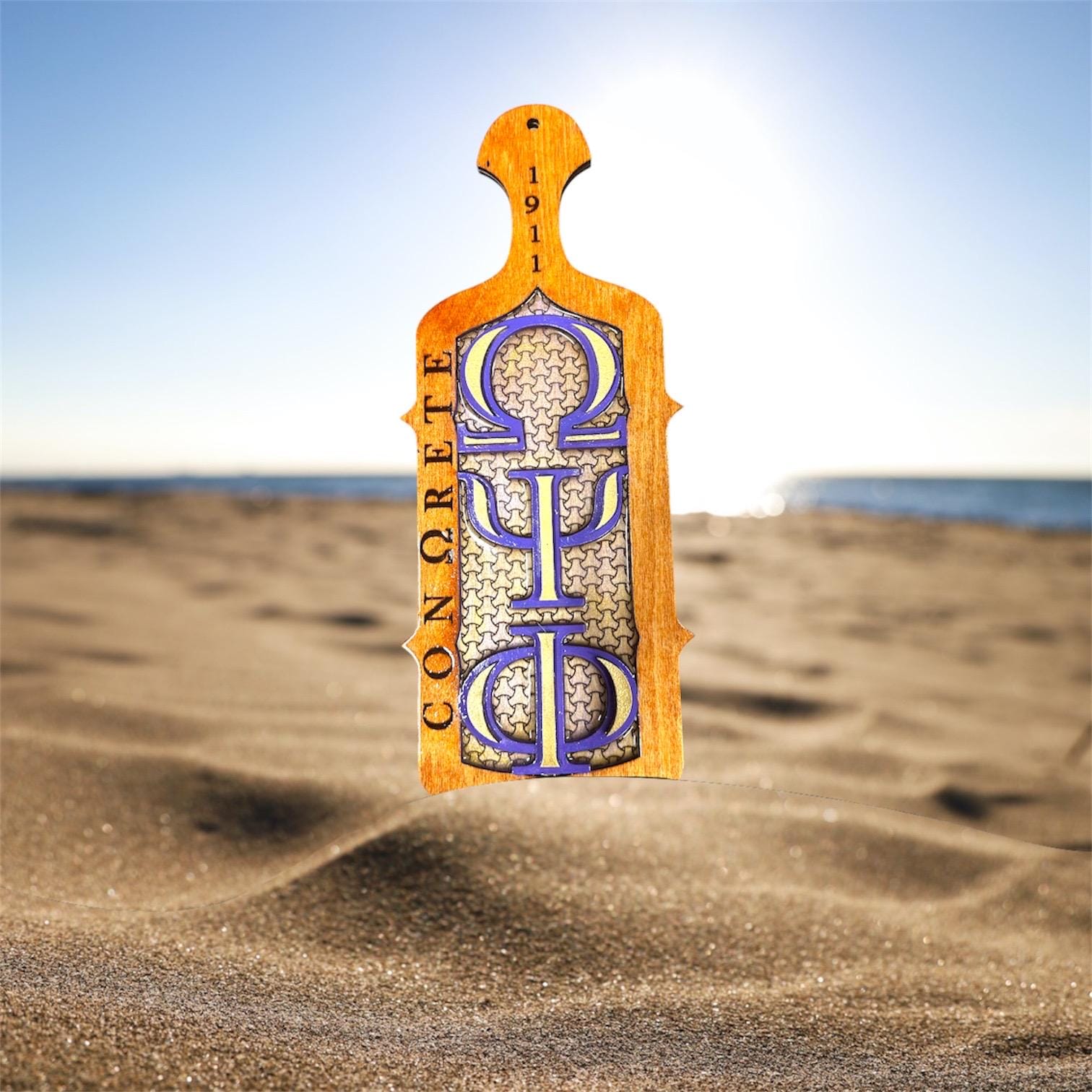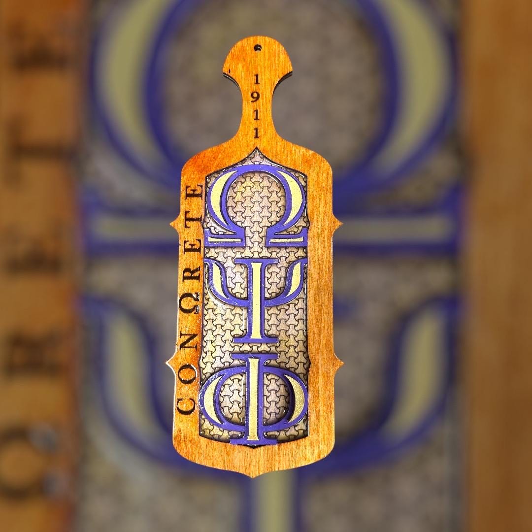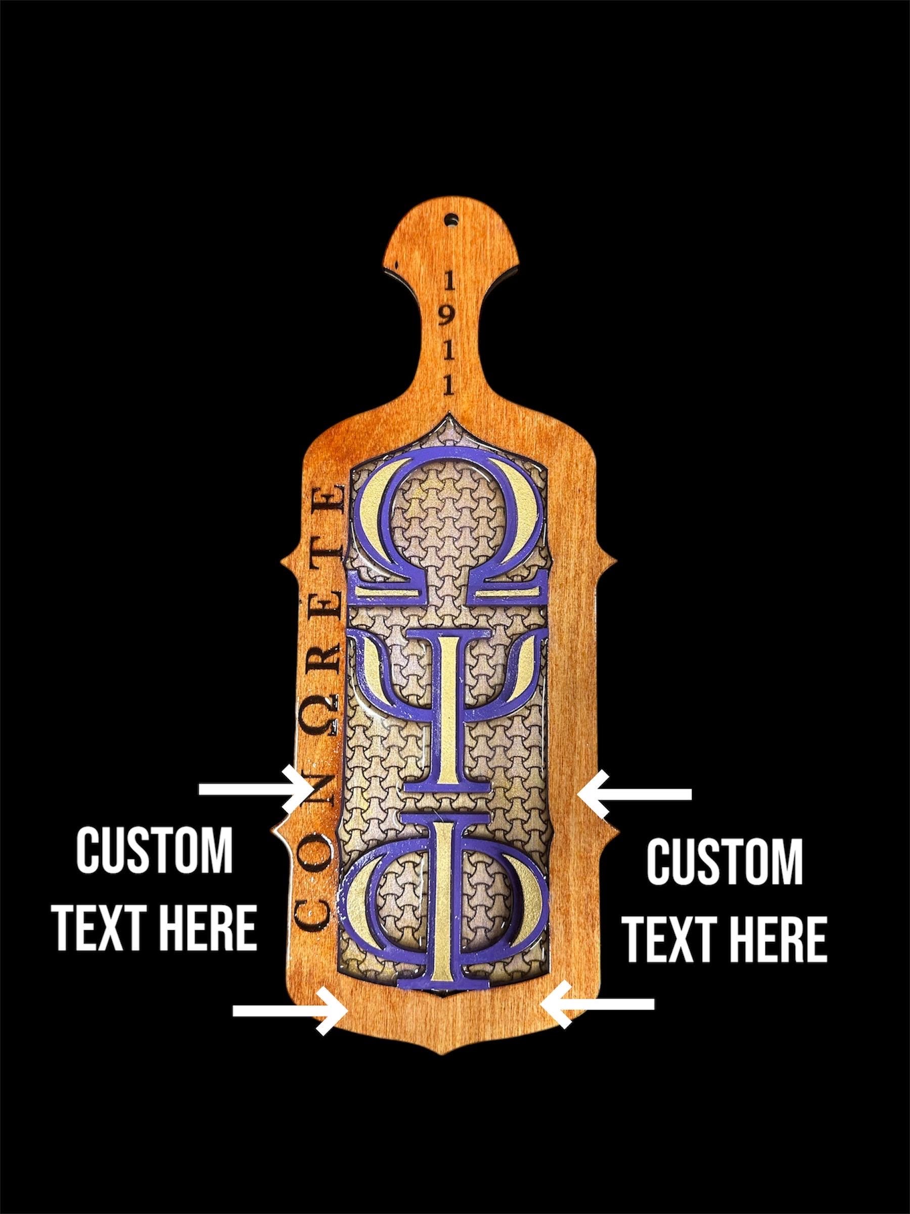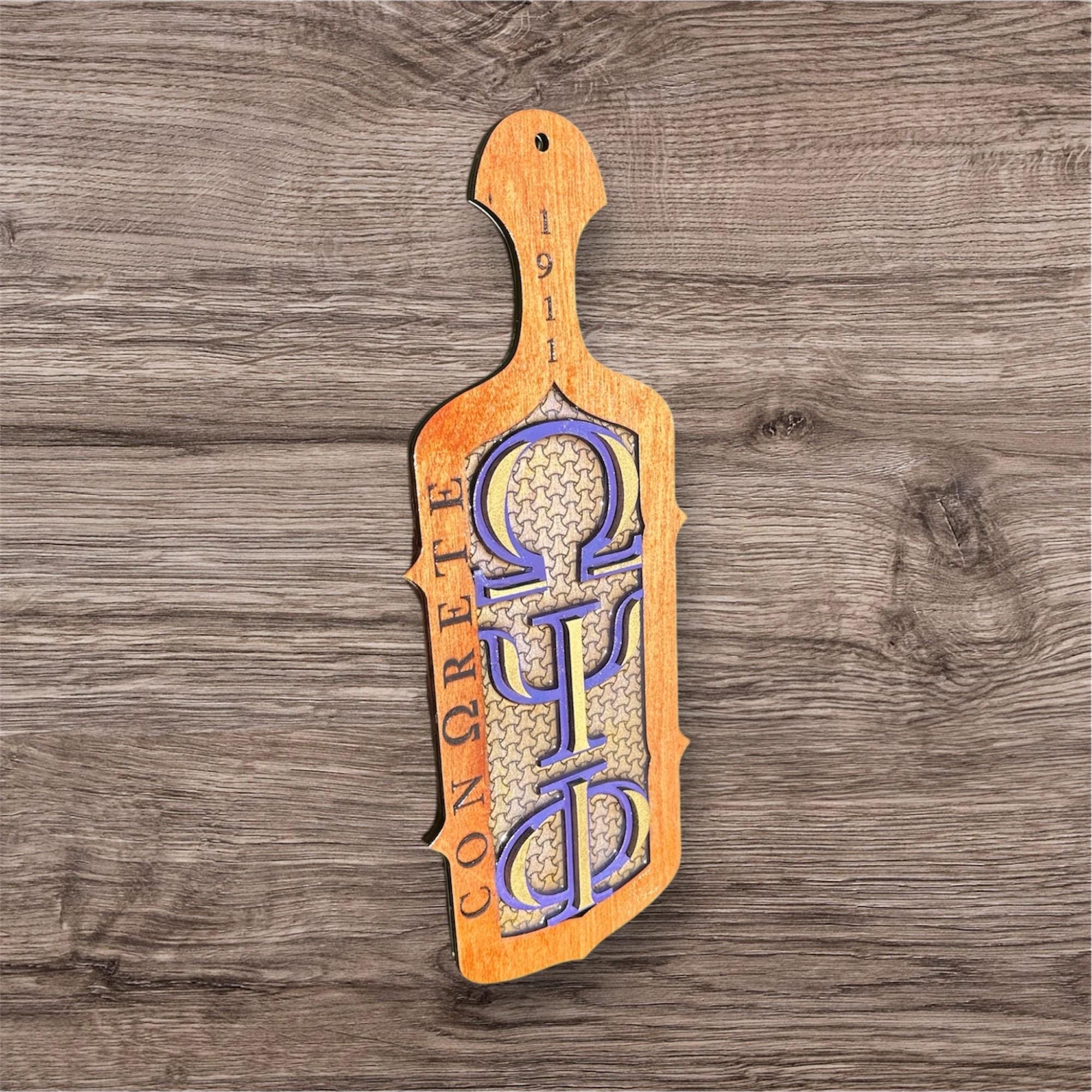 Introducing the custom Omega Psi Phi wooden Wall-mounted paddle , a stunning addition to any decor. This wall art features Laser cut in relief, this piece is hand-finished by an artist for a truly unique touch.